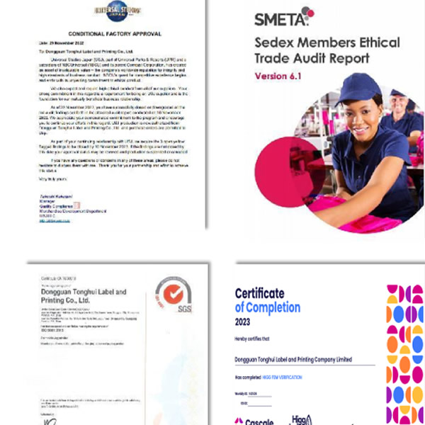 主营生产和销售:各类织唛商标,织章,印刷商标,印唛,标签印刷,不干胶商标,丝印商标,热转印标,无感商标,烫唛,皮牌商标,电压商标、商标带、绣花标,布贴标、皮贴标、商标吊牌,彩卡,折盒等广泛用于各行各业。工厂经过多年的发展与开拓,规模日益发展壮大。从设计制作、工程研发、生产制造、产后加工、品检、物流配送、售后服务等一套完整的优质服务体系,及优秀的经营管理团队。已通过SGS ISO9001:2008(新版是2015版)国际质量体系认证,产品质量符合各国安全出口环保标准。承蒙国内外客户的大力支持,目前已有许多国际著名品牌定点授权我公司生产,并是通过全球迪士尼FAMA认证验厂,麦当劳验厂,环球影视验厂的供应商,是各行业值得信赖并具有实力的合作伙伴。